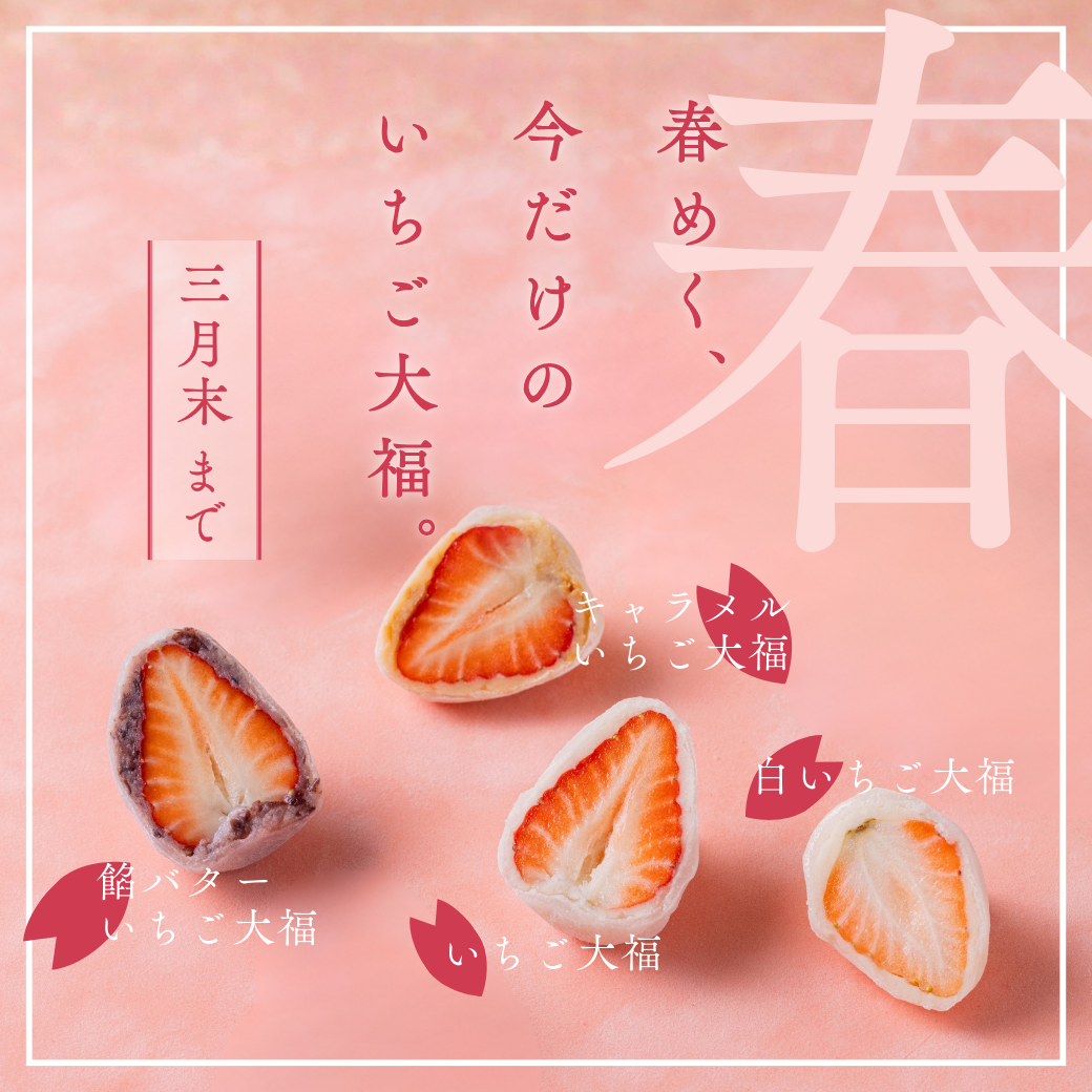【3月31日まで限定】いちご大福食べ比べ4個セット(餡バター・キャラメル・白いちご・いちご)