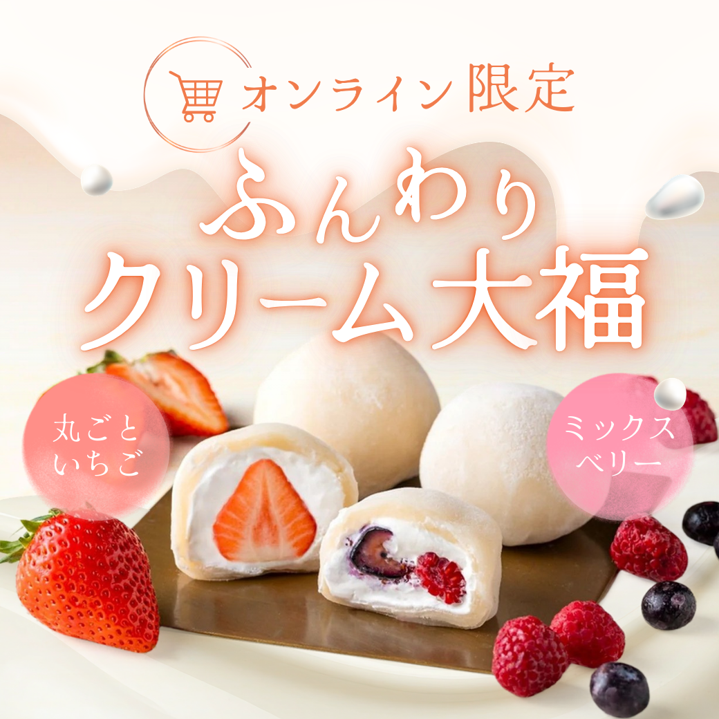 【オンライン限定】冷凍:濃厚なめらか ふんわりクリーム大福 丸ごといちご、ミックスベリー(各3個入り6個セット)