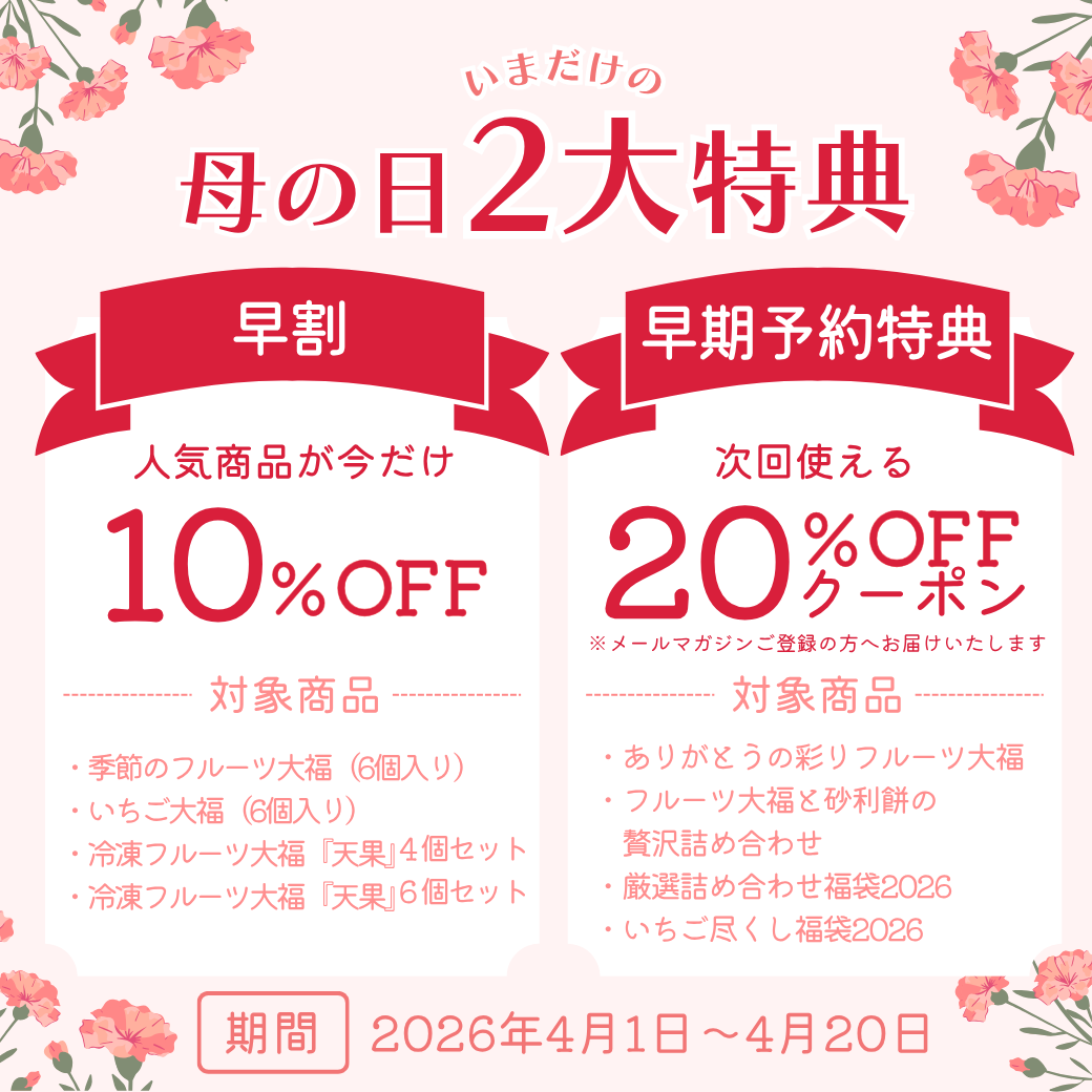 【母の日限定】心ほどけるフルーツ大福と砂利餅の贅沢詰め合わせ|早期予約特典:メルマガ登録者限定!20%OFFクーポン付き